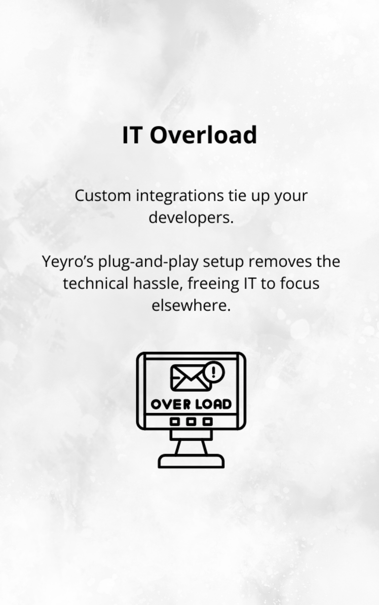 Slash the time, complexity, and expense of building and maintaining wearable solutions. Yeyro’s plug-and-play architecture delivers enterprise-grade capabilities with zero upfront investment.
