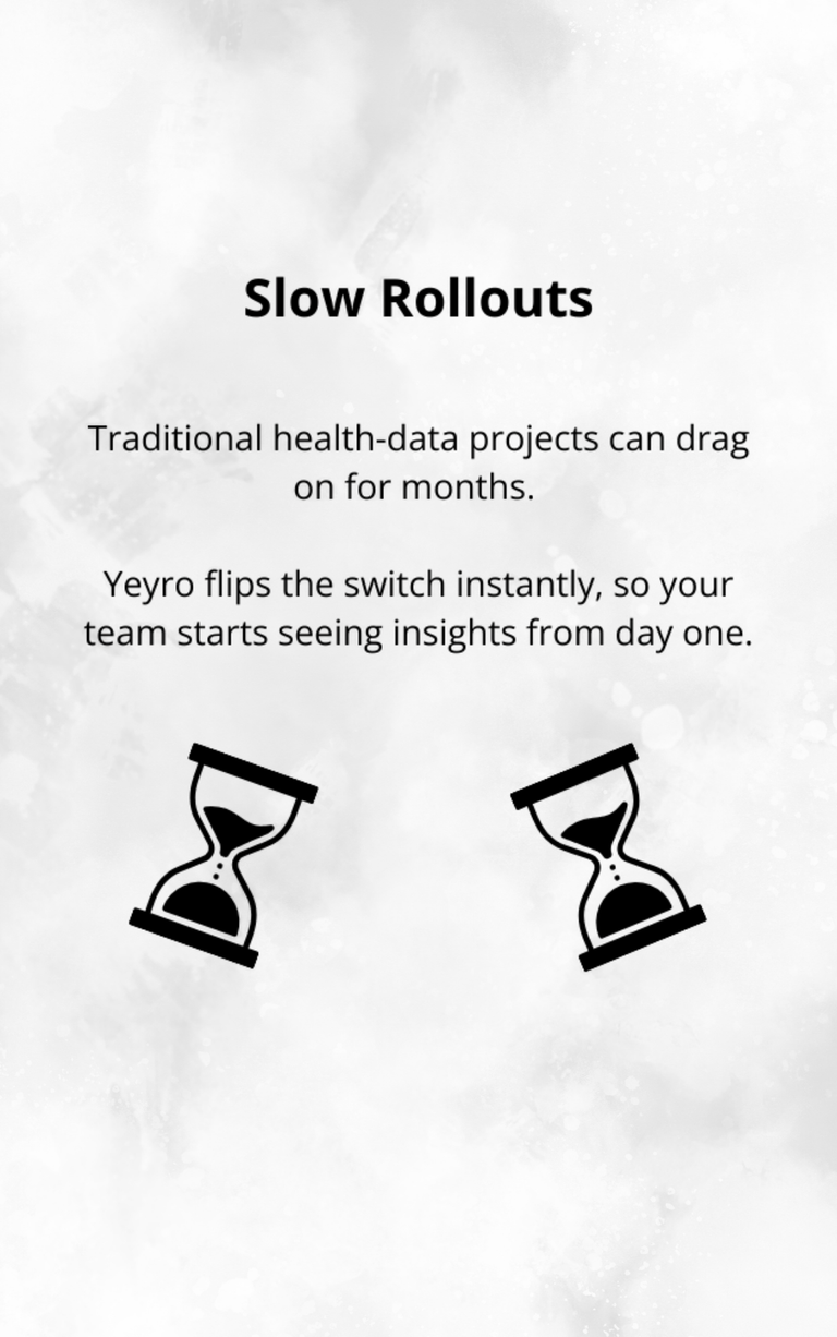 Seamlessly connect health data to your existing systems. Yeyro’s APIs enable quick, bi-directional data exchange with any healthcare software, eliminating custom development overhead.
